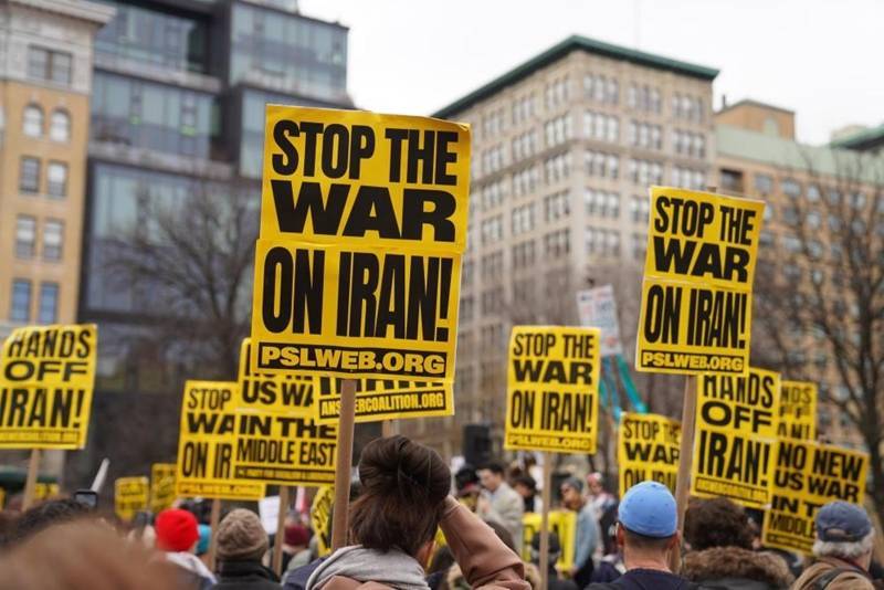 3月7日,人们在美国纽约参加集会游行,抗议美国和以色列对伊朗发动军事打击。(新华社图)